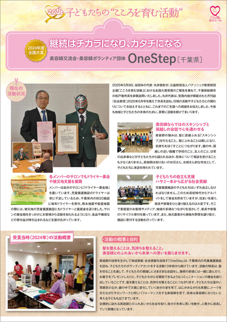 『One Step』は、主に千葉県内の美容師を対象に、独立開業やスキルアップ、情報交換を目的として2012年5月に設立されました。
