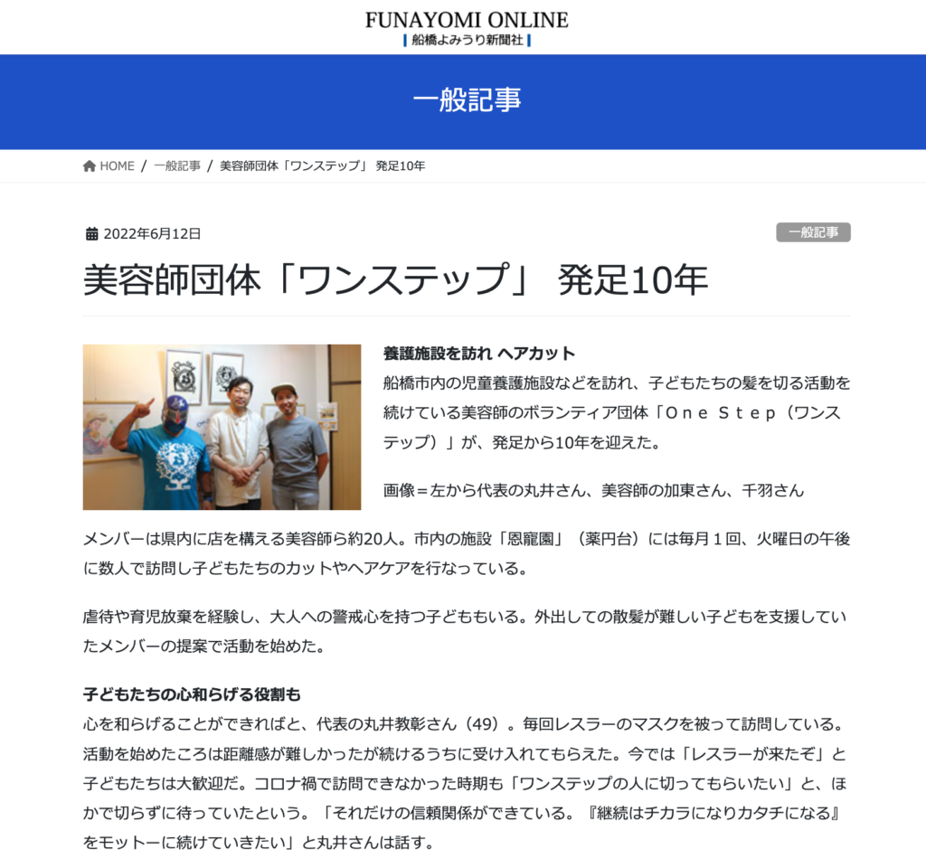 このたび、私たち美容師団体「OneStep(ワンステップ)」発足10年の活動が、船橋よみうり新聞社の「FUNAYOMI ONLINE」にて紹介されました。
