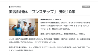 このたび、美容師ボランティア団体OneStepが受賞した「2024年度 子どもたちの“こころを育む活動” 全国大賞」について、地域情報紙「ちいき新聞 船橋東版」(2025年6月13日発行)および、Webサイト「チイコミ!」にてご紹介いただき...
